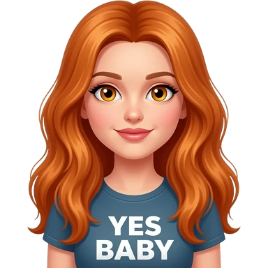 sexy girl with overlong ginger hair and ginger eyes a top with YES BABY written on it emoji