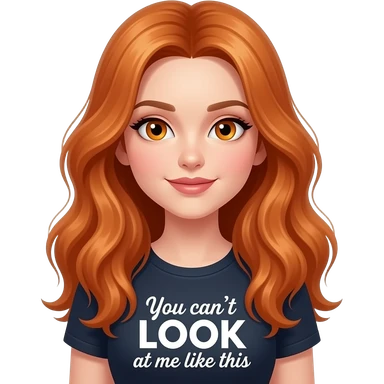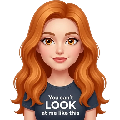sexy girl with overlong ginger hair and ginger eyes a top with You can't LOOK at me like this written on it emoji