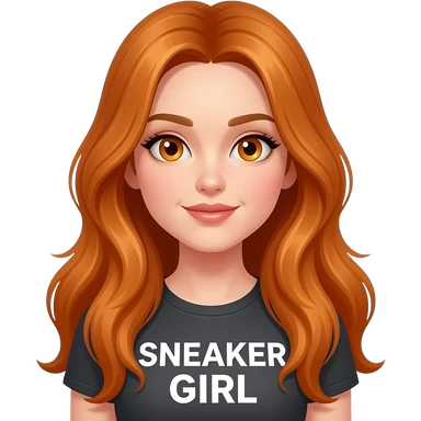 sexy girl with overlong ginger hair and ginger eyes a top with SNEAKER GIRL written on it emoji