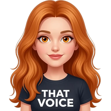sexy girl with overlong ginger hair and ginger eyes a top with ... THAT VOICE written on it emoji
