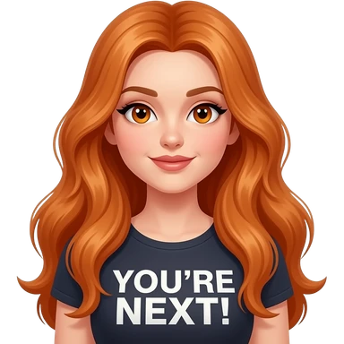 sexy girl with overlong ginger hair and ginger eyes a top with YOU'RE NEXT! written on it emoji