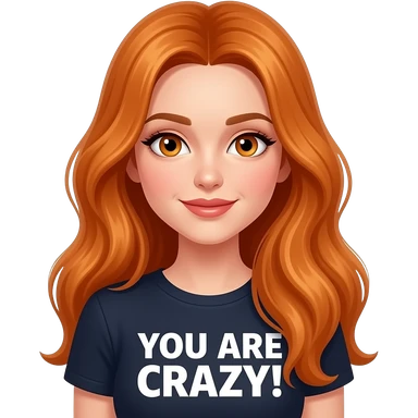 sexy girl with overlong ginger hair and ginger eyes a top with YOU ARE CRAZY! written on it emoji