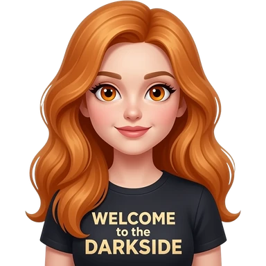 sexy girl with overlong ginger hair and ginger eyes a top with WELCOME to the DARKSIDE written on it emoji
