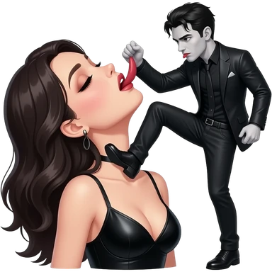Sexy gothic man licking sexy gothic woman with her head tilted back neck. He is kicking her neckFantasy emoji