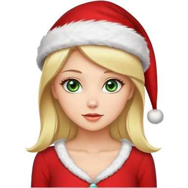 Sexy green eyed blonde in a red dress wearing a Santa hat emoji | AI Emoji Generator