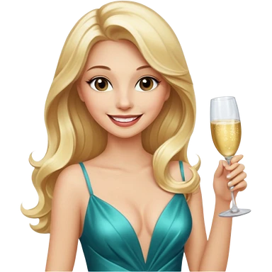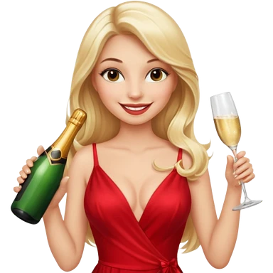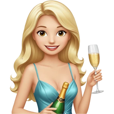 Glamorous blonde lady holding champagne bottle, long hair with makeup smiling sexy emoji