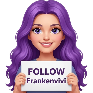 sexy girl with long purple hair holding a FOLLOW Frankenvivi sign emoji