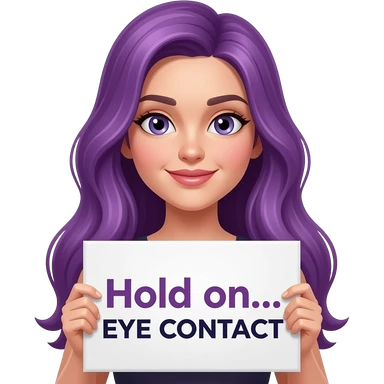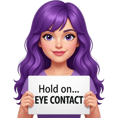 sexy girl with long purple hair holding a Hold on... EYE CONTACT sign emoji