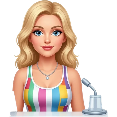 Sexy girl, blonde, blue eyes, slavic, colorful tanktop, receptionist emoji