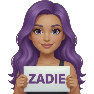 sexy girl with long purple hair holding a ZADIE sign emoji