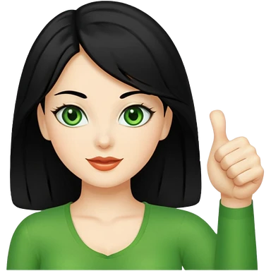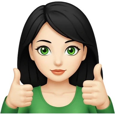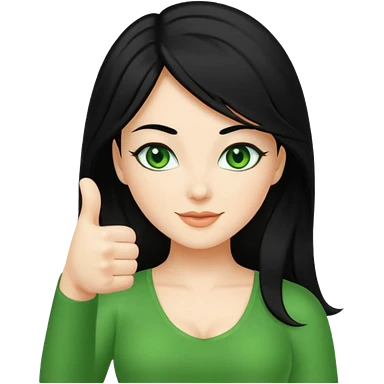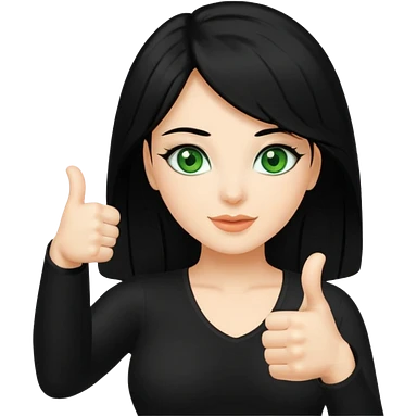 Sexy lady with black hair and green eyes thumbs up black emoji