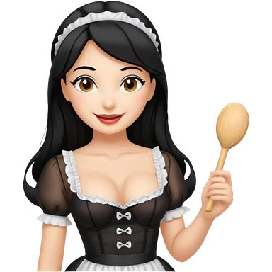 Sexy Latina maid showing off her fat ass and body in some sexy maid lingerie give her black hair and a sex toy in her hand emoji | AI Emoji Generator