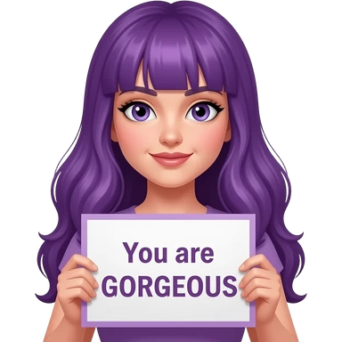 sexy girl with long purple hair holding a You are GORGEOUS sign emoji