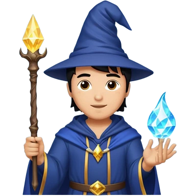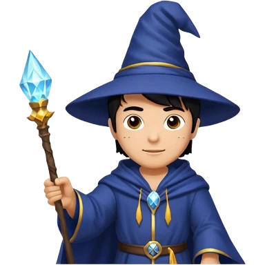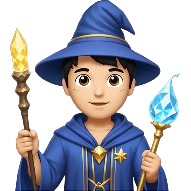 mach mir einen fitness typen in einem zauberer outfit mit schwarzen harren und ein leuchtendem zauberstab emoji