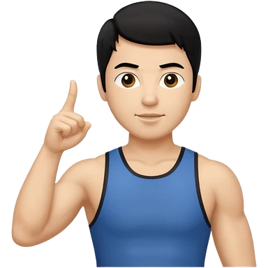 mach mir einen fitness trainer mit schwarzen haaren der seinen finger nach oben zeigt als hätte er eine idee emoji