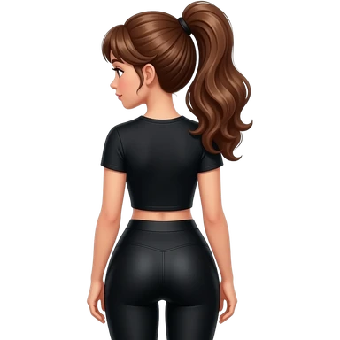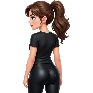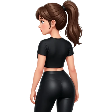 brown hair, huge ass wearing tight leggings black and black t shirt tight. girl, hair tied in ponytail glossy and sexy emoji