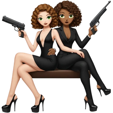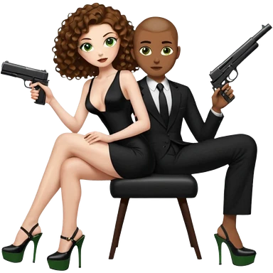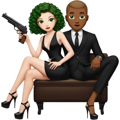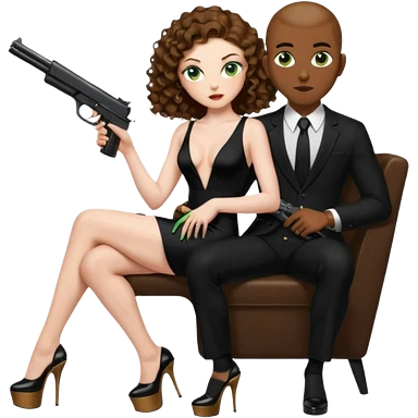 Sexy, playboy stripper woman brown curly long hair half naked sensual devil horns red glitter dress with slit, holding cash and a phone while she is sitting top of gold wearing tall high heels with thick platform emoji | AI Emoji Generator