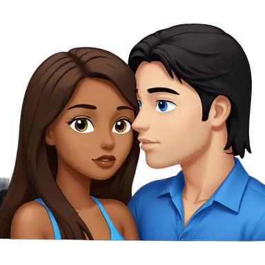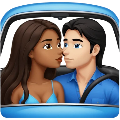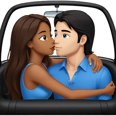 Brown sexy girl with brown eyes long brown hair and sexy white man with black hair blue eyes kissing in car emoji