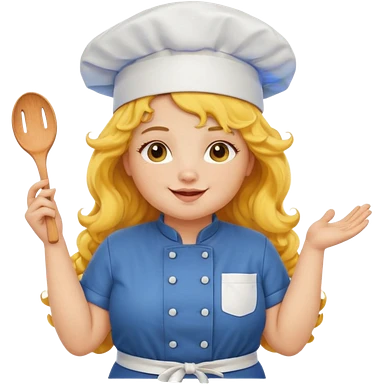 girl, yellow Long curly hair, happy, wearing chef uniform and chef hat emoji