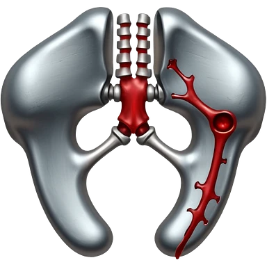 metallic anatomic bones with blood, steel texture, dark dramatic tone, minimal details emoji