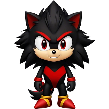 Shadow the Hedgehog with black fur, red stripes, white chest fur, and red eyes emoji