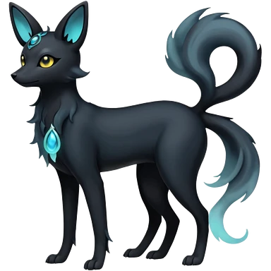 Shadowy Matte-Black Mysterious Wispy-Aura Fog-Veiled Elegant Umbreon-Fionbri-fusion-creature (full body) emoji