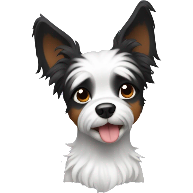 Shaggy black and white small dog with pointed ears emoji | AI Emoji Generator