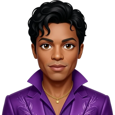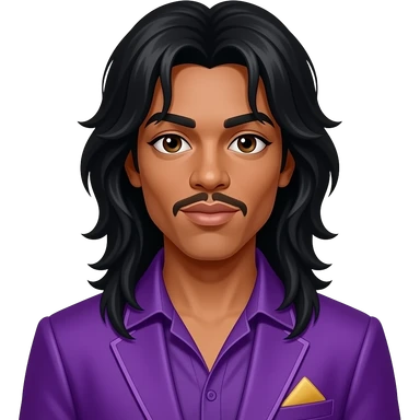 Prince Rogers Nelson with brown eyes, black hair, purple metallic outfit emoji