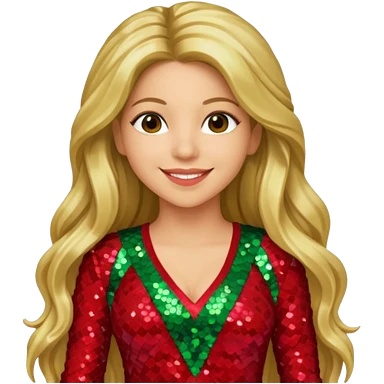 Shakira with long dark blonde hair, red sequin outfit emoji | AI Emoji Generator