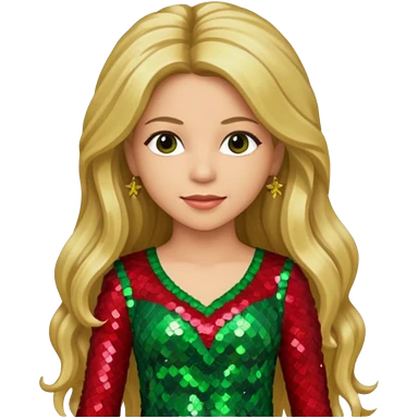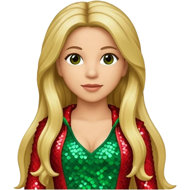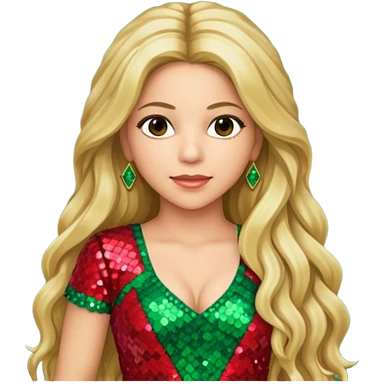 Shakira with long dark blonde hair, red green sequin outfit emoji