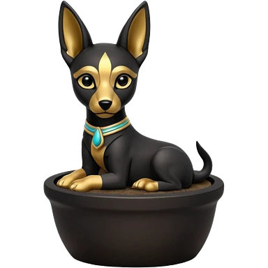 Comforting black fur Anubis tiny statuette puppy badly-cracked bonsai pot emoji