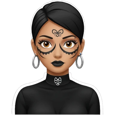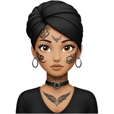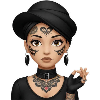 white shaman woman black clothes black accesories face tattoos emoji
