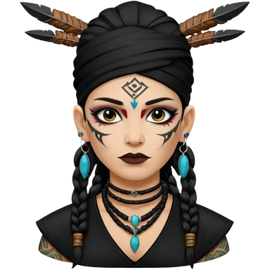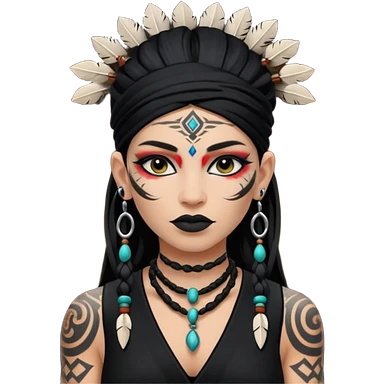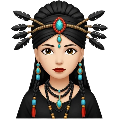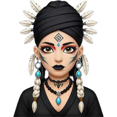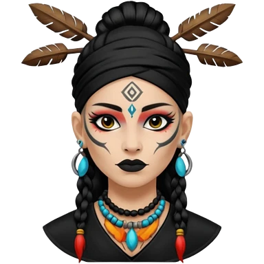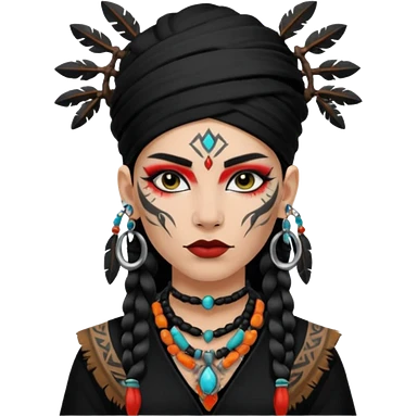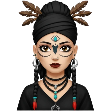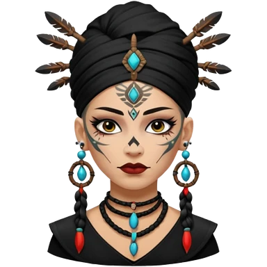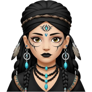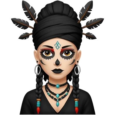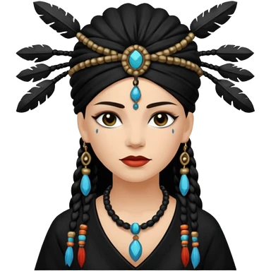 shaman woman black clothes black accesories emoji | AI Emoji Generator