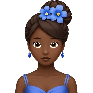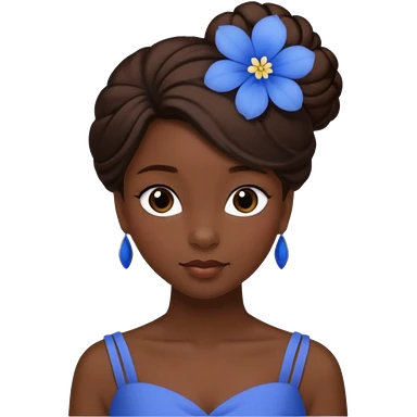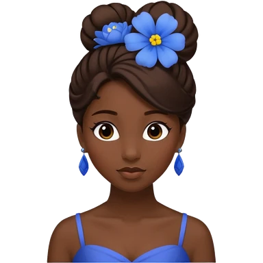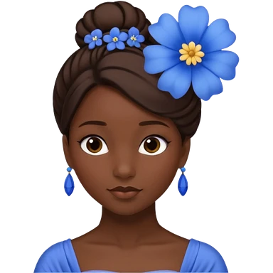 tạo cho tôi emoji tạo hình của công chúa da đen tóc nâu búi tóc 1 bên trên đỉnh đầu, cô ý cài hoa màu xanh emoji