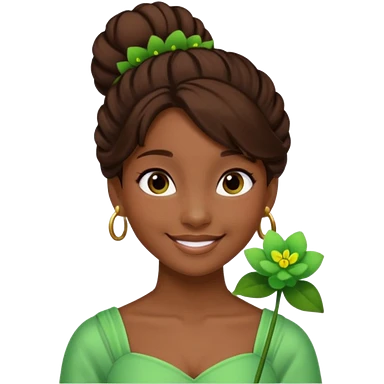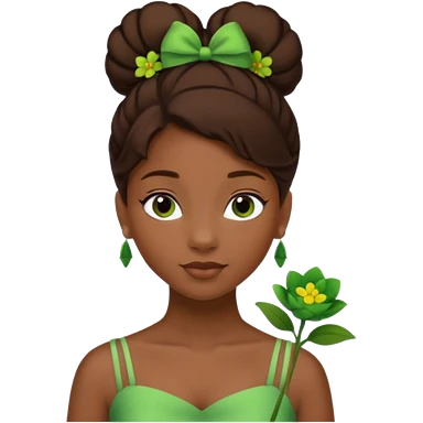 tạo cho tôi emoji tạo hình của công chúa da đen tóc nâu búi tóc 1 bên trên đỉnh đầu, cô ý cài hoa màu xanh lá cây. không đeo khuyên tai emoji