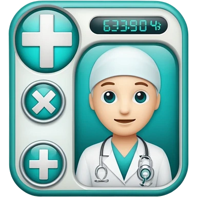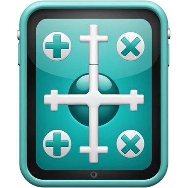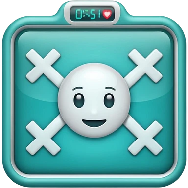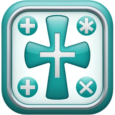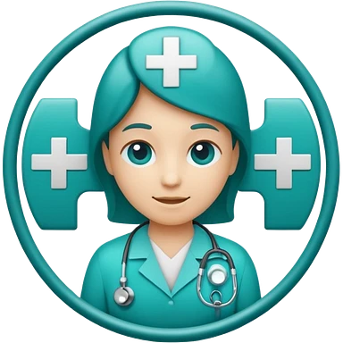 Emoji-style icon representing disease detection using a medical cross, scan frame, and health signal. Clean, friendly, rounded design, clear at small sizes, teal and white accents, no text, transparent background. emoji