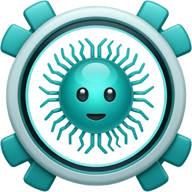 Emoji-style icon showing a virus or germ being scanned by an AI vision frame or camera lens, representing image-based disease detection. Clean, modern, rounded emoji design, clear at small sizes, teal and white accents, no text, transparent background. emoji