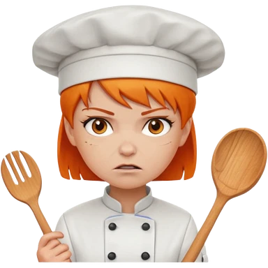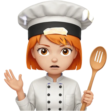 girl, Short orange hair, angry, wearing chef uniform and chef hat emoji