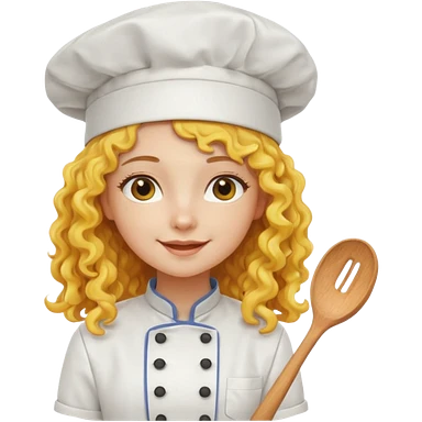 girl, yellow Long curly hair, happy, wearing chef uniform and chef hat emoji