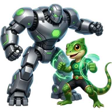 Japnese Lizard superhero fights a giant robot emoji