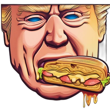 Donald Trump in a sharp suit, but with exaggerated gold chains, flashy rings, and bold face tattoos. Holding a champagne glass, smirking confidently, with a chaotic, edgy vibe. emoji