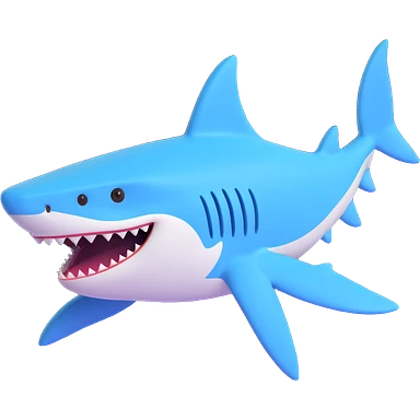 A 3D Microsoft-style shark emoji, detailed and colorful emoji