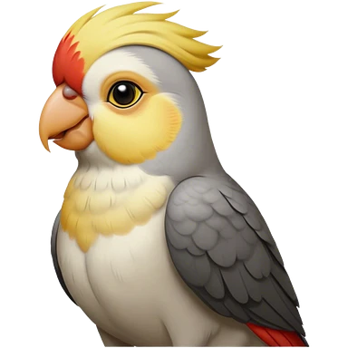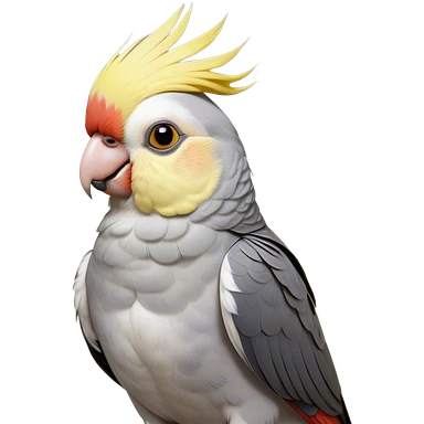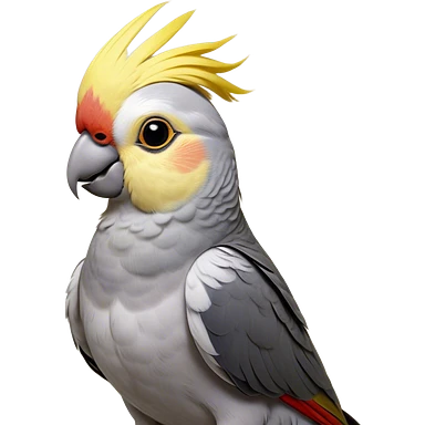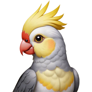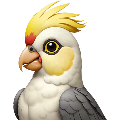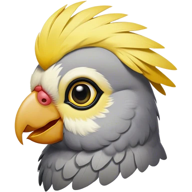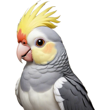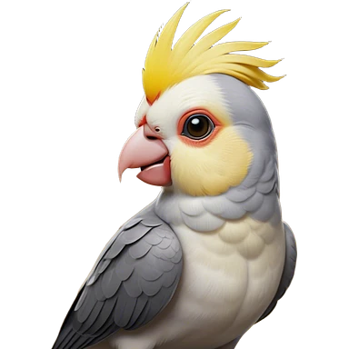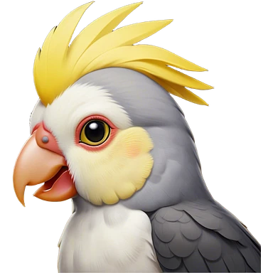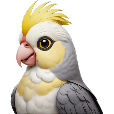 Cinematic Noble Cockatiel Portrait Emoji, Poised and regal, with a slender, delicate build and a beautifully groomed grey fur accented by vibrant yellow cheek patches and a graceful crest, deep-set soulful dark eyes, Simplified yet sharp and sophisticated features, highly detailed, glowing with a soft, dignified glow, high shine, intelligent and charming, stylized with an air of elegance, focused and attentive, soft glowing outline, capturing the essence of a watchful and confident avian companion, so majestic it feels as though it could flutter out of the screen with effortless authority! emoji