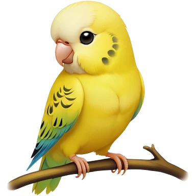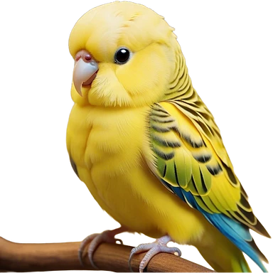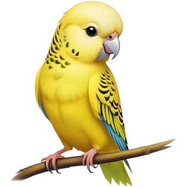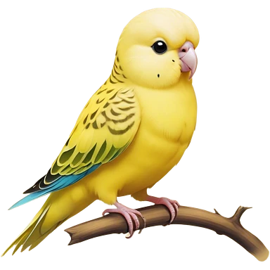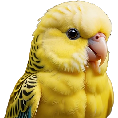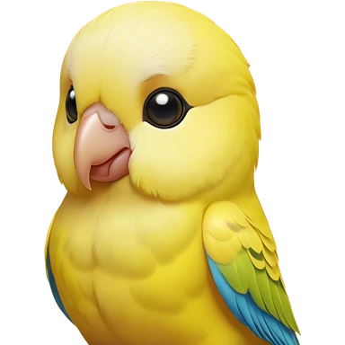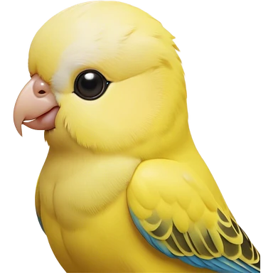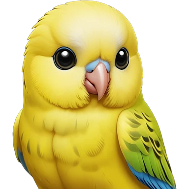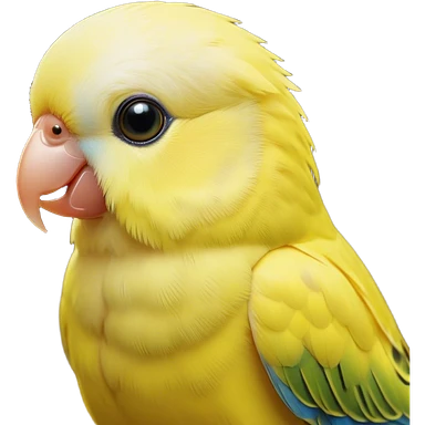Cinematic Noble Yellow Budgie Portrait Emoji, Poised and regal, with a petite, delicate build and a smooth, well-groomed fur of brilliant yellow feathers, deep-set soulful dark eyes, Simplified yet sharp and sophisticated features, highly detailed, glowing with a soft, dignified glow, high shine, intelligent and charming, stylized with an air of elegance, focused and attentive, soft glowing outline, capturing the essence of a watchful and confident avian companion, so majestic it feels as though it could flutter out of the screen with effortless authority! emoji
