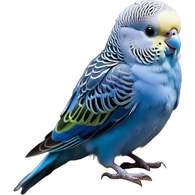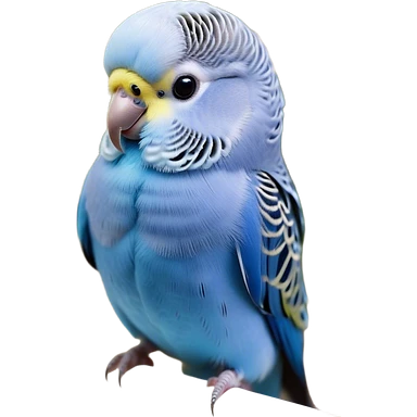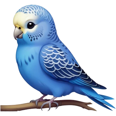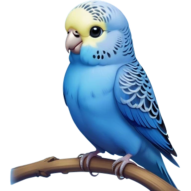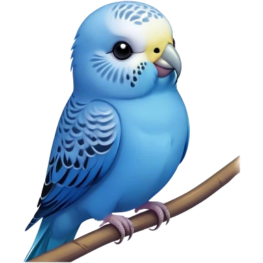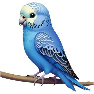 Cinematic Noble Blue Budgie Portrait Emoji, Poised and regal, with a petite, delicate build and a smooth, well-groomed fur of vibrant blue feathers, deep-set soulful dark eyes, Simplified yet sharp and sophisticated features, highly detailed, glowing with a soft, dignified glow, high shine, intelligent and charming, stylized with an air of elegance, focused and attentive, soft glowing outline, capturing the essence of a watchful and confident avian companion, so majestic it feels as though it could flutter out of the screen with effortless authority! emoji