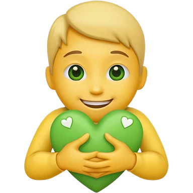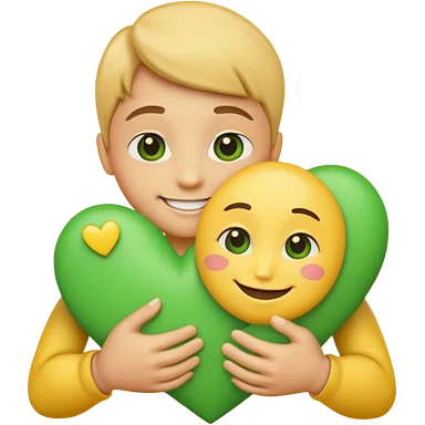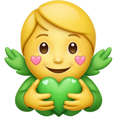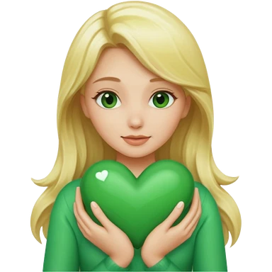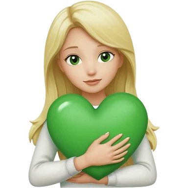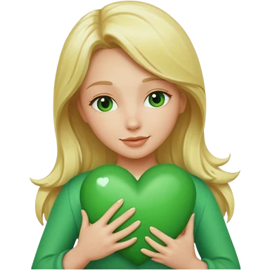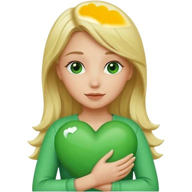 A hug emoji of a blonde women that hugs a green hearth emoji