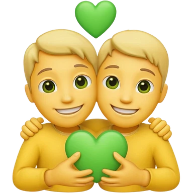 A hug emoji that holds green hearts in hands emoji