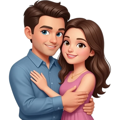 Girl with with sharp eyes tie hair hugging a guy with short curly brown hair emoji