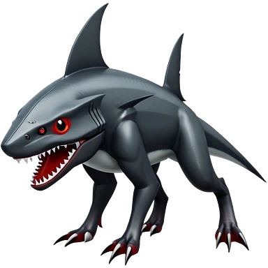 Realistic dark edgy futuristic modern advanced Sharpedo-Houndoom-Scizor-sergal-hybrid-animal creature with a shark-tail and red scars, full body, with cool sharp markings emoji