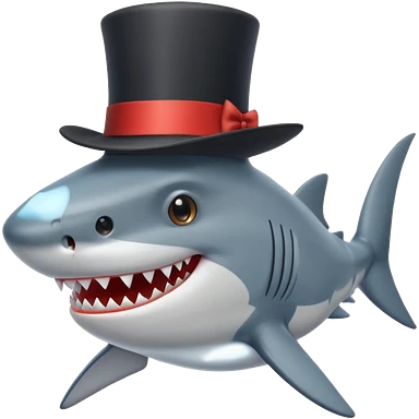 shark with a black top hat, smiling emoji